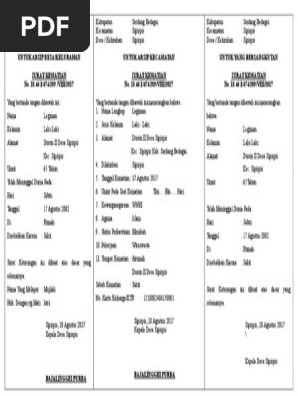 Contoh surat kematian dari rt. Atas perhatian bapak/ibu, kami ucapkan terima kasih. Contoh soal perangkat desa pancasila dan uud 1945 1. Surat keterangan ahli waris ini sebenarnya sangatlah penting untuk membuktikan bahwa seseorang memang benar ahli waris yang sah dari pewaris. Sebelum membahas mengenai bagaimana bentuk dari surat keterangan ahli waris ini, alangkah baiknya jika para pembaca mengetahui terlebih dahulu beberapa dokumen yang harus dilengkapi untuk mengurus surat ini. Dan kematian ini salah satu yang menjadi penyebab warga negara dihapus ataupun dihilangkan dari daftar keluarga. Surat kematian sangatlah penting digunakan untuk. Daftar contoh surat ketarangan usaha dari desa. Contoh surat jalan dari desa. Contoh surat jalan dinas atau surat jalan dari perusahaan. Contoh surat ahli waris dari kecamatan. Surat kematian dibuat untuk berbagai keperluan terkait, misalnya untuk membuat pengalihan harta warisan, asuransi. Isi surat kematian yaitu berisi tentang identitas, sebab kematian, waktu dan tempat kematian.